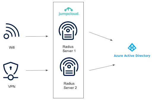 With JumpCloud, IT admins can bring their own user credentials from Microsoft Azure or Active Directory and pair them with JumpCloud’s Cloud RADIUS services for password-based authentication. JumpCloud introduced third party authentication to extend what’s possible with other identity providers. The initial use case is Wi-Fi authentication.