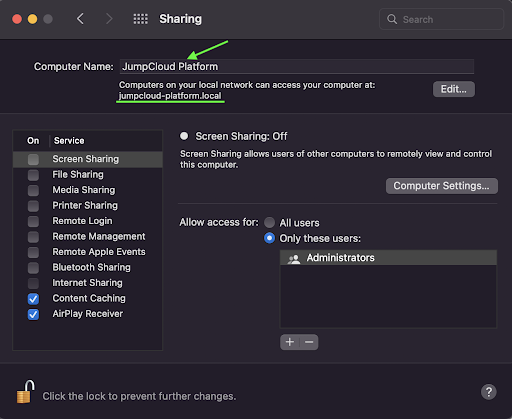 For instance, in Figure 1, the computer name is JumpCloud Platform and the local hostname is jumpcloud-platform.local.