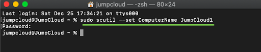 For example, to rename our computer name from JumpCloud to JumpCloud1, we only need to execute the following command via the terminal (refer to Figure 2):