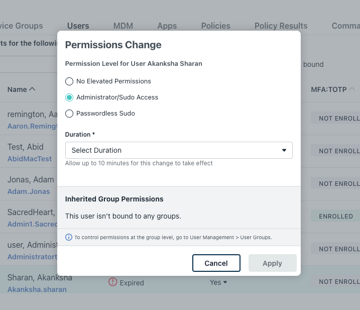 Key Capabilities of JumpCloud Temporary Elevated Device Privileges