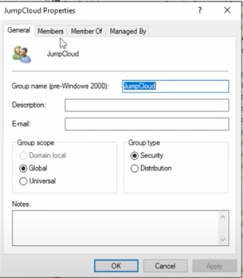 - Add those security groups as member(s) of a “JumpCloud” group in AD