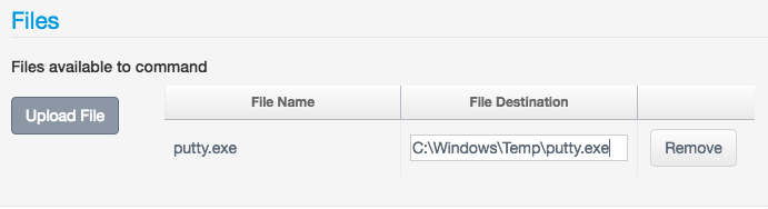 - Before populating your installation command into the main pane, click Upload File under the Files section to attach the installation package