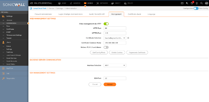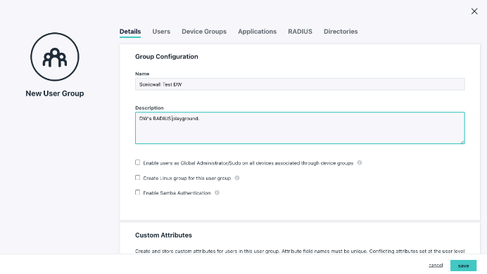 SonicWall will require you to have RADIUS server settings (including a few advanced options), import JumpCloud’s RADIUS certificate, and ensure that remote management is permitted.You’ll be able to decide which permissions group members will inherit on the firewall by default.