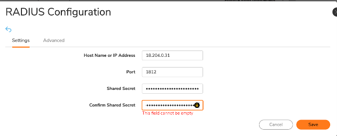 You have several options for JumpCloud IP addresses, but they will always communicate exclusively over port 1812. Port 1813 “accounting” is not a part of this configuration. Your shared secret is entered here; be certain that you keep it private and confidential.