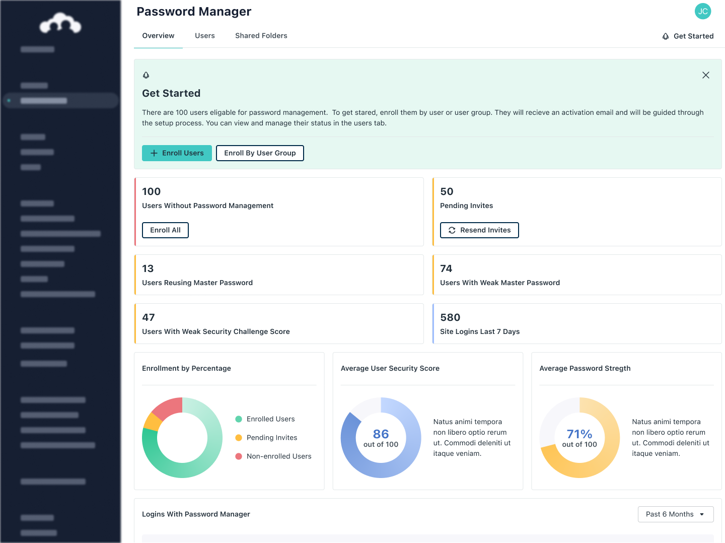 Password management is most effective when integrated seamlessly with your core directory and other authentication practices such as SSO and MFA. Easily manage privileges, passwords, and security, all in a single console, for full-scale access control.