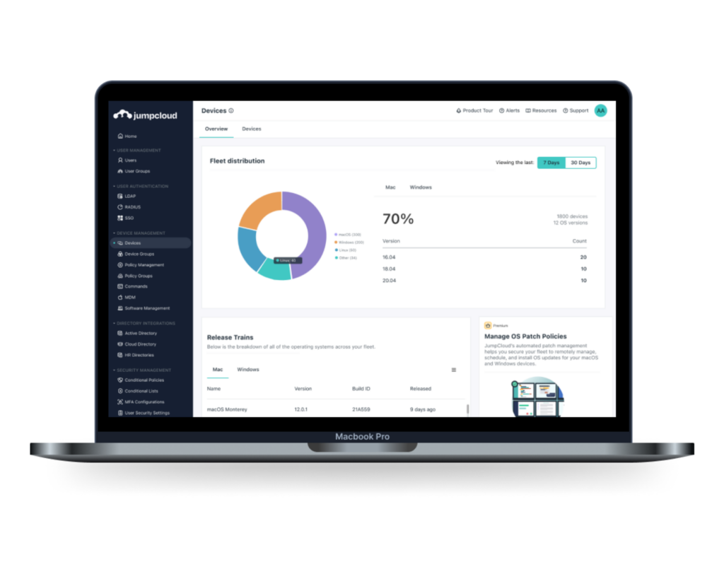 JumpCloud gives admins a single cloud directory platform to secure users in heterogeneous device environments, wherever work happens. The first release of JumpCloud Patch Management focuses on OS level patching for Mac and Windows, with Linux, browser, and application patching coming soon. This release includes: