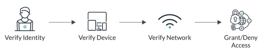 In this model, your core directory platform must have the mechanisms in place to confirm that a user is who they say they are, that they’re using a secure network and device, and that they have the correct access permissions for their role.