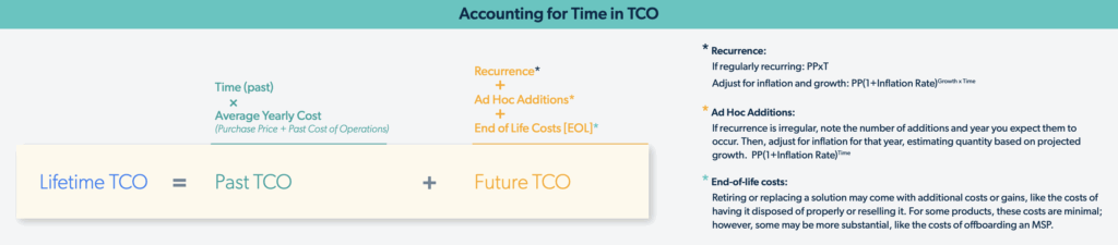 Rule of Thumb: When calculating the current TCO for an existing product, the time period starts at the beginning of the product or stack’s lifecycle and stretches to now.