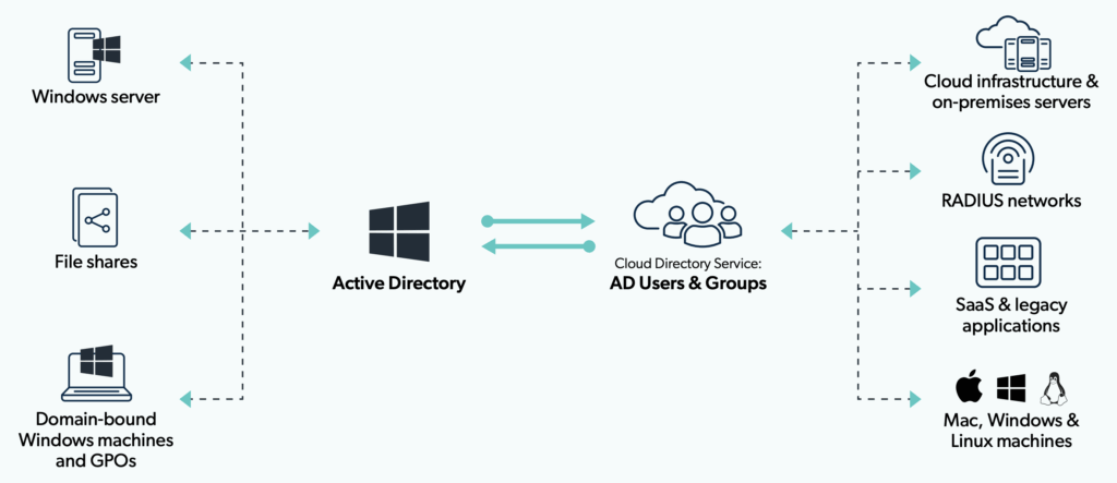 With the rise of alternative operating systems, including macOS and Linux, and web-based applications and cloud servers, admins no longer had all the tools they needed in AD to maintain complete control over their environments. They sought identity bridges and third-party vendors to manage new machines and federate core AD identities to new resources.