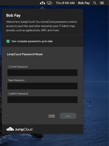 One of the greatest benefits of using JumpCloud is the ability for deep system management and control over user access, system policies, and remote commands on your remote fleet without the need for RDP, VPNs, or SSH. This is all done through JumpCloud’s lightweight system agent. Users can easily change their password natively within Windows using ctrl-alt-del and macOS users can use the JumpCloud Mac App in their menu bar. If you enable users to change their password with common workflows in the OS, you help dissuade users from clicking any suspicious email that asks them to change their password via the web.