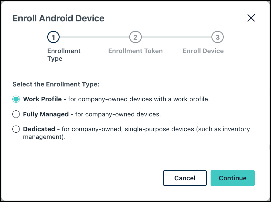 | Enrollment Method | Company-owned Android device | Personal Android device |