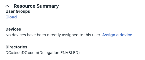 - Staged user - resources section showing AD delegation enabled label