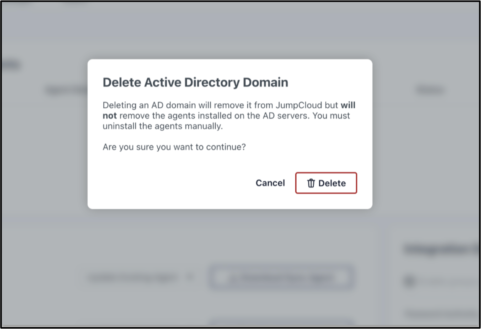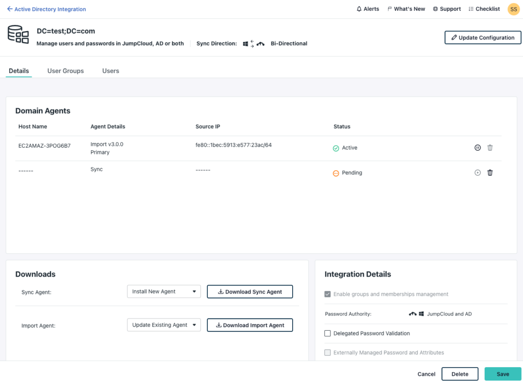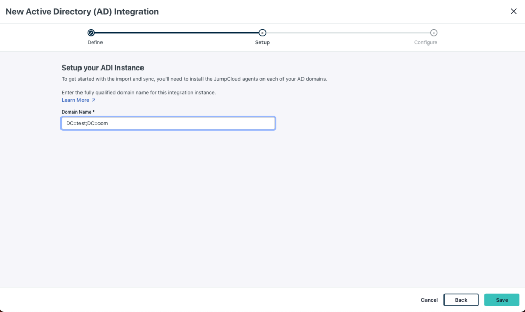 - Log in to the JumpCloud admin portal and navigate to the ADI configuration for your AD domain.
