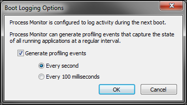 You may need to troubleshoot an issue related to your boot process which requires additional configuration in Process Monitor.