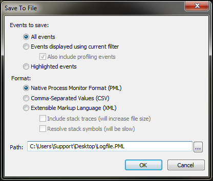 - Save the Process Monitor by going to File > Save.