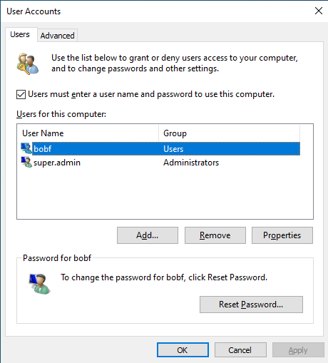 - Log into the system using an administrator account that is not the account being renamed. From a command line or PowerShell, run the User Accounts Management wizard: