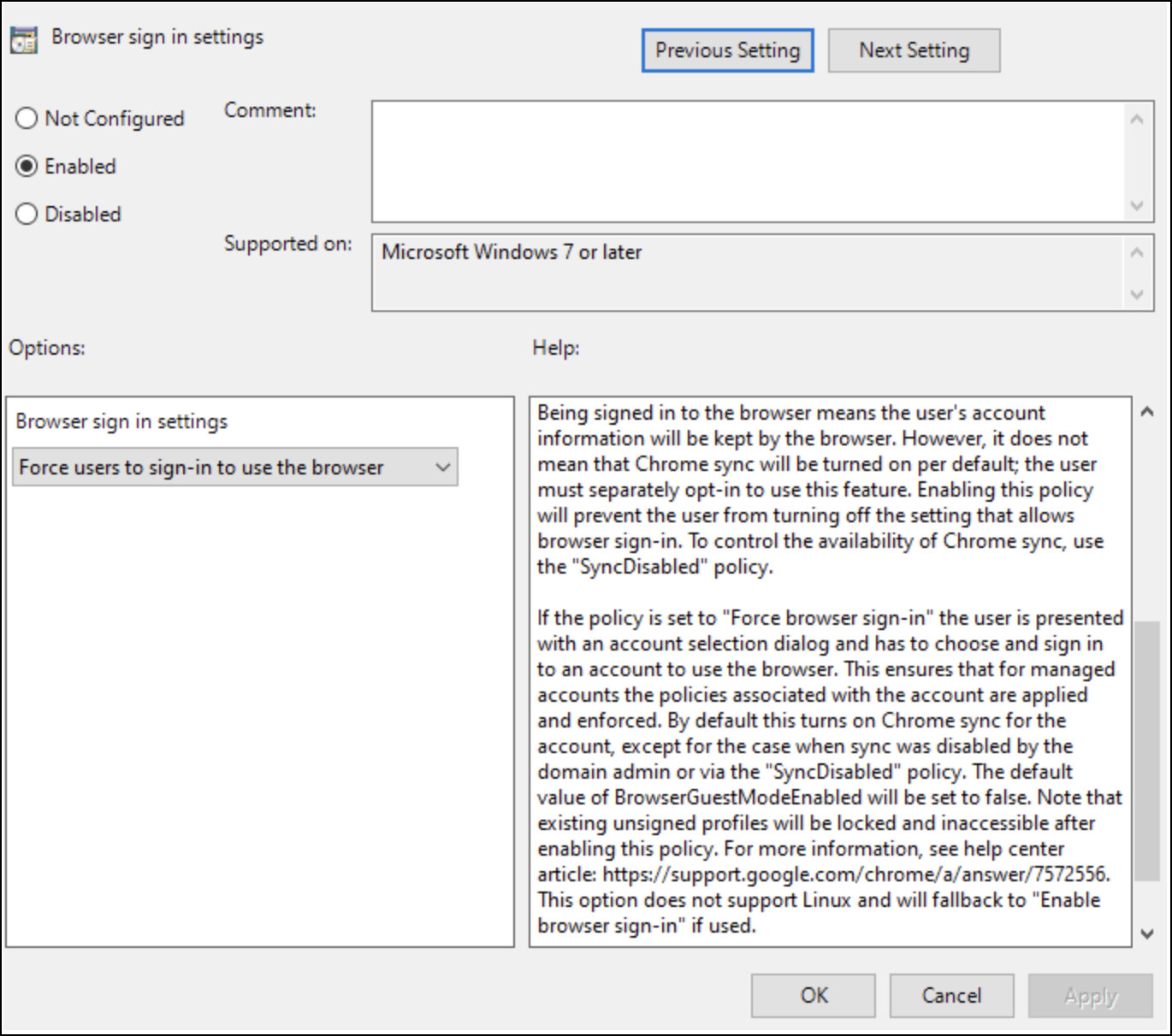 - You can also use another strategy to force Chrome users to sign in and control Chrome policy via Google's cloud-based policies. You can control this with the following device/machine based policy, then when the user logs in to the corresponding Chrome login, you can apply the desired policies.