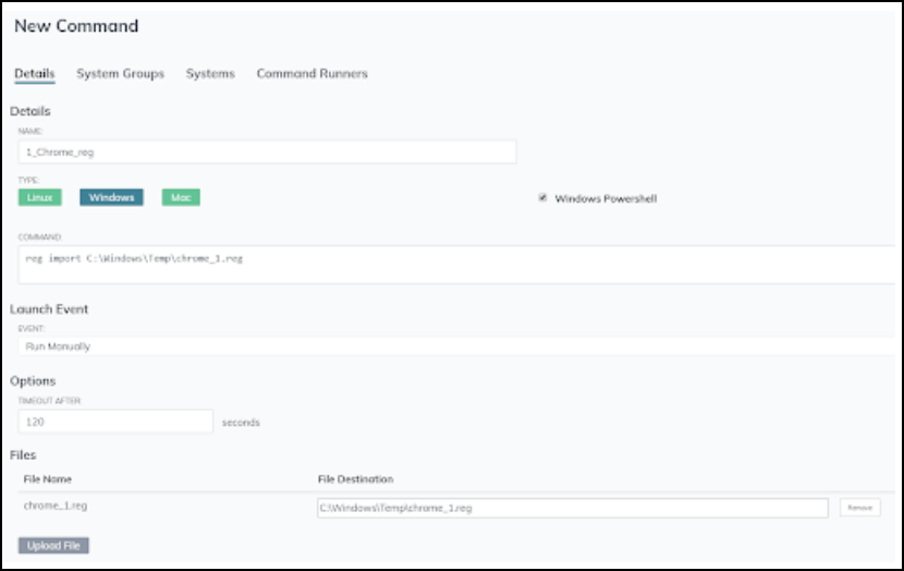 It's possible to use Chrome enterprise policies, export them as a registry key file, and apply them using JumpCloud commands to desired systems or system groups. The procedure in this KB article should be performed alongside Set Chrome policies for users or browsers.