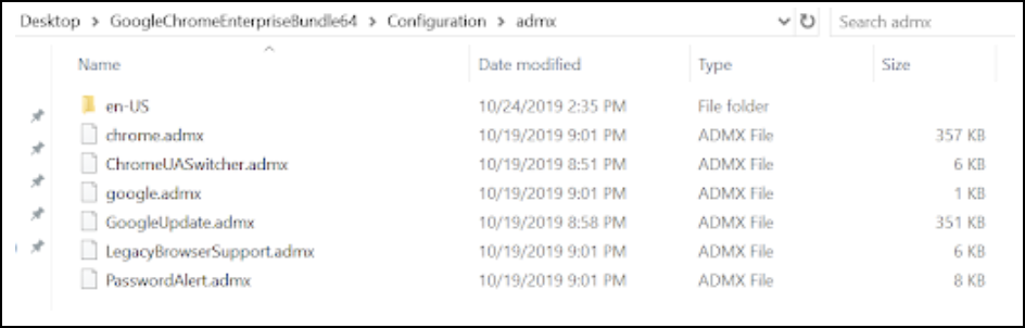 configuration\admxfiles and the languageen-USfolders to the local directory -C:\Windows\PolicyDefinitions\. - Click Start > Run >
