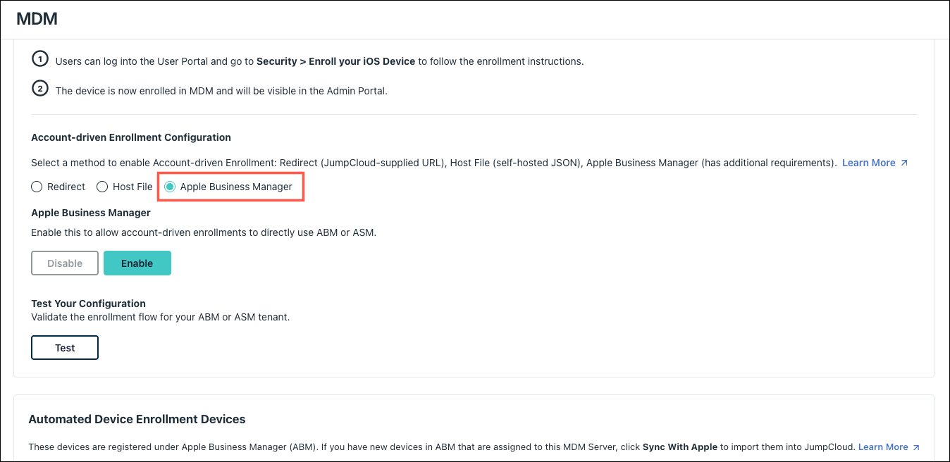 - Under Account-driven Enrollment Configuration, select Apple Business Manager.
