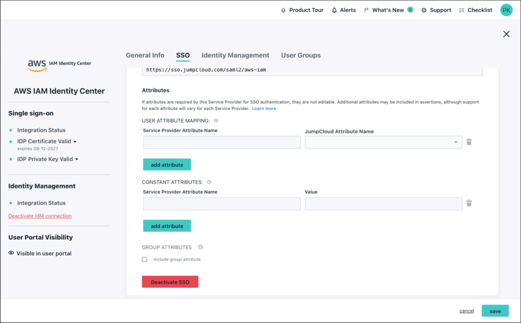 - Under JumpCloud Attribute Name, enter the names that represent your AWS roles.