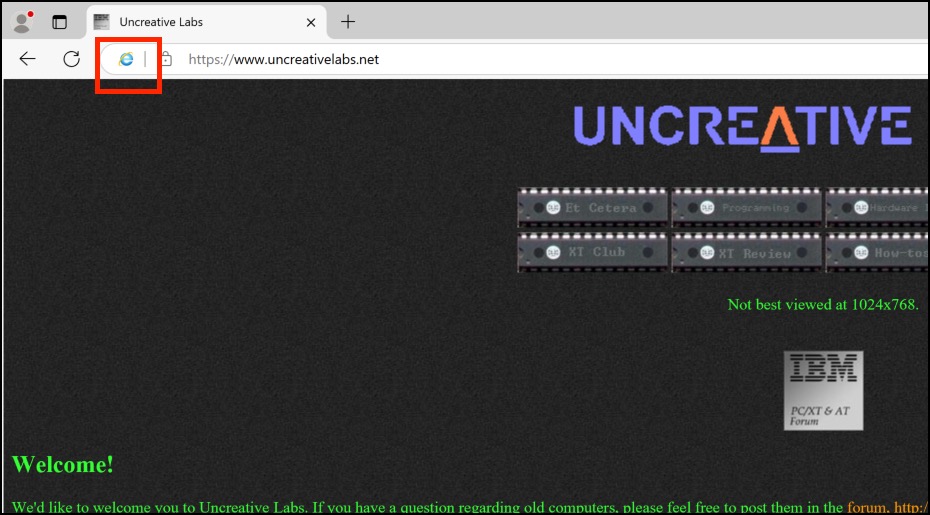 - Enter the URL of the website in the site list created previously. The site should load with an Internet Explorer icon to the left of the URL indicating that this site is running in IE Mode.
