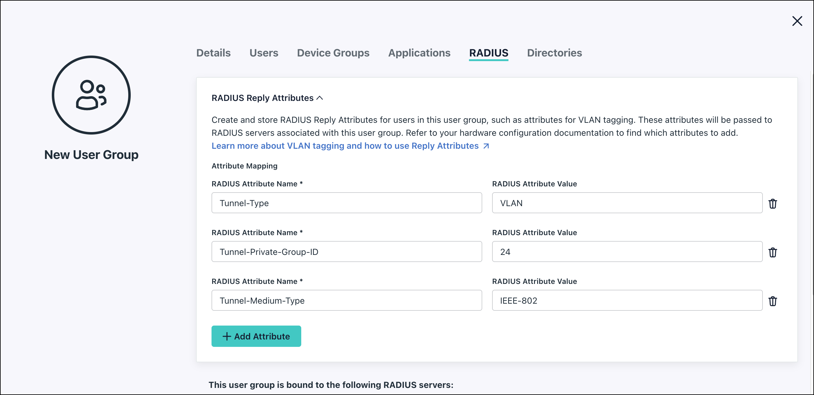 - If you’ve configured RADIUS Reply Attributes for user groups in the API, they’re now listed in the RADIUS tab of the User Groups panel.