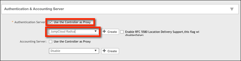 - Under Authentication & Accounting Server, check the box for Use the Controller as Proxy.