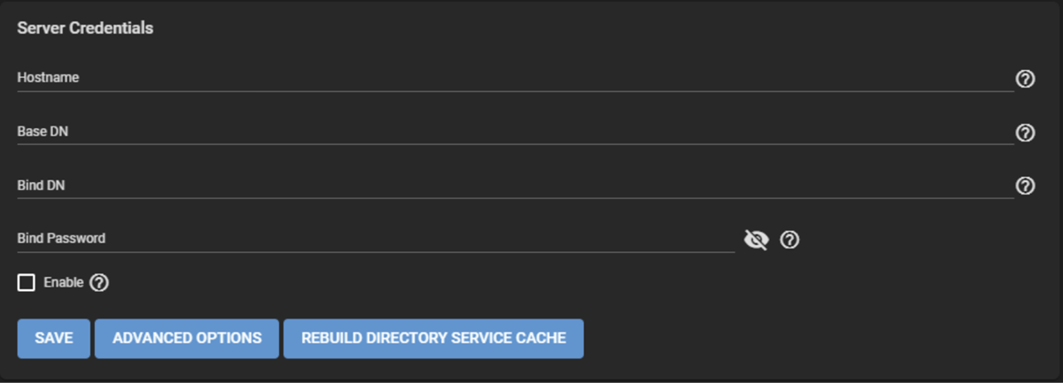 - Once configured, you may have to click Rebuild Directory Service Cache (see image below) for users to be imported from LDAP, or for any updates to the JumpCloud Samba User Group to propagate to TrueNAS.