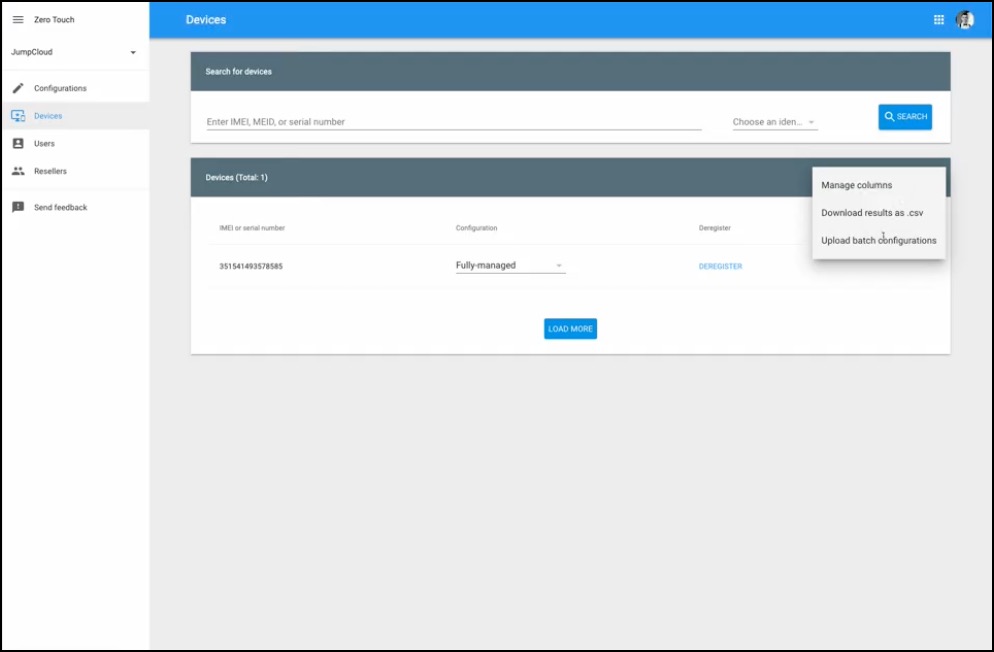 - In the zero-touch portal, click the Devices tab.