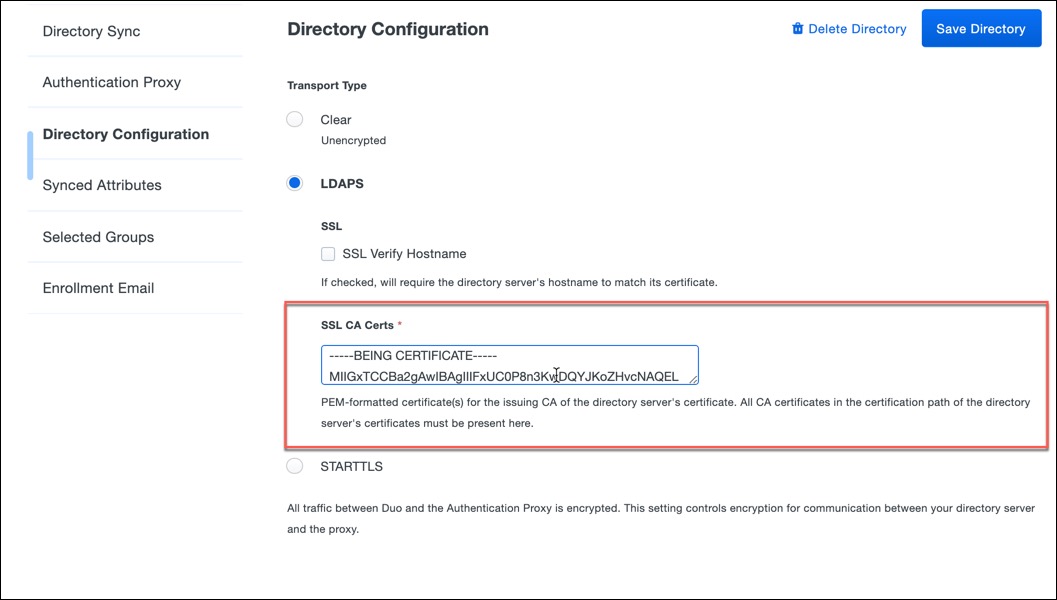Duo Directory Sync LDAP Certificate Chain