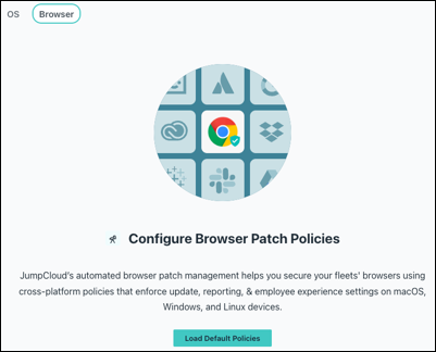 - If you haven’t yet configured a Google Chrome browser patch policy, click Load Default Policies to create the four preconfigured universal default Chrome policies.