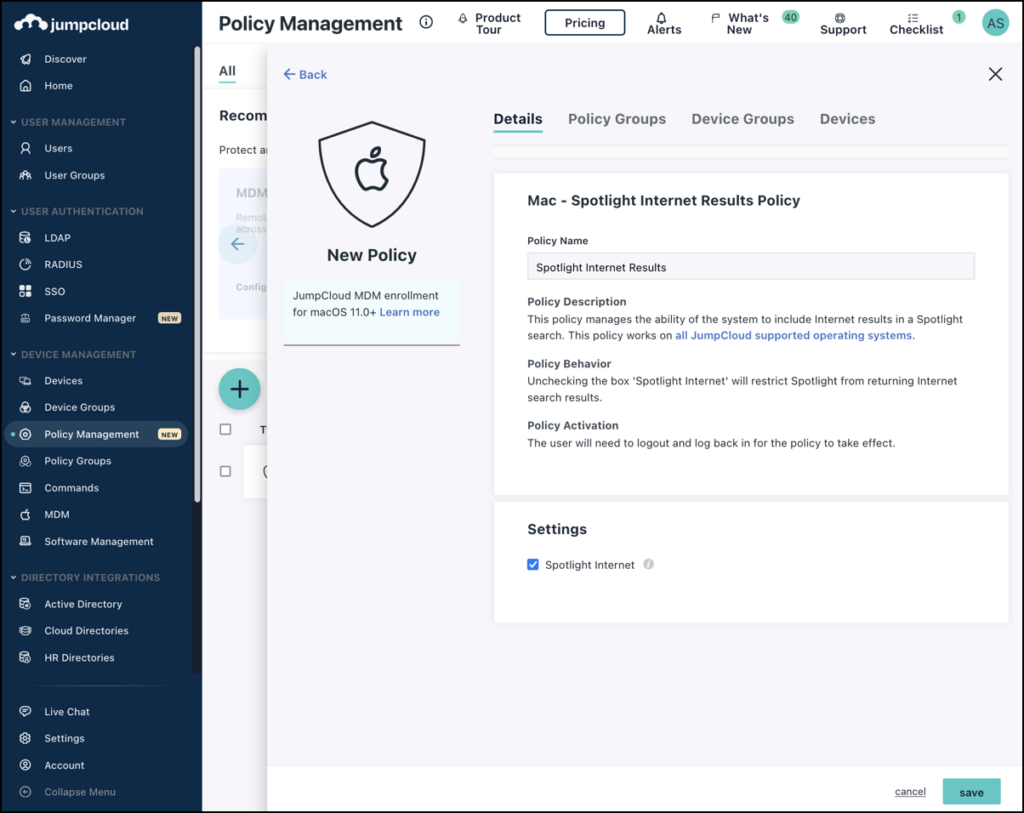 - Go to DEVICE MANAGEMENT > Policy Management.