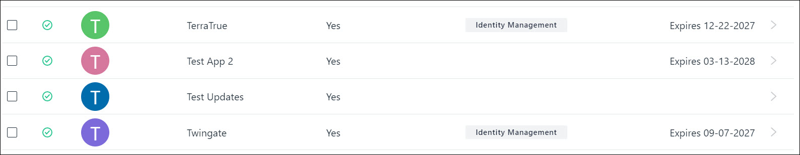 When using the Color Indicator, applications in the Admin Portal are displayed like this: