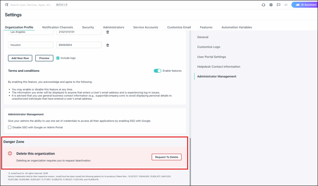 Deleting your Org from JumpCloud