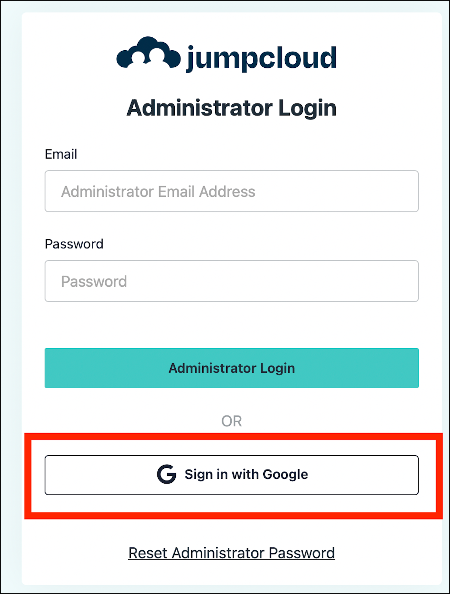 - Go back to the JumpCloud Admin Portal login page and click the Sign in with Google button to confirm functionality.