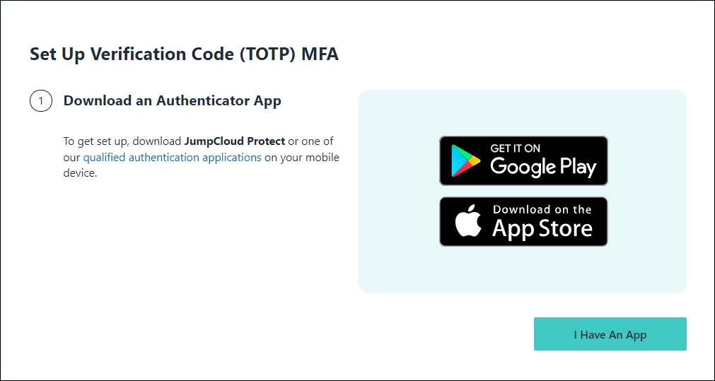 - Download an Authenticator App if you do not have one already or click I Have An App if you already do.