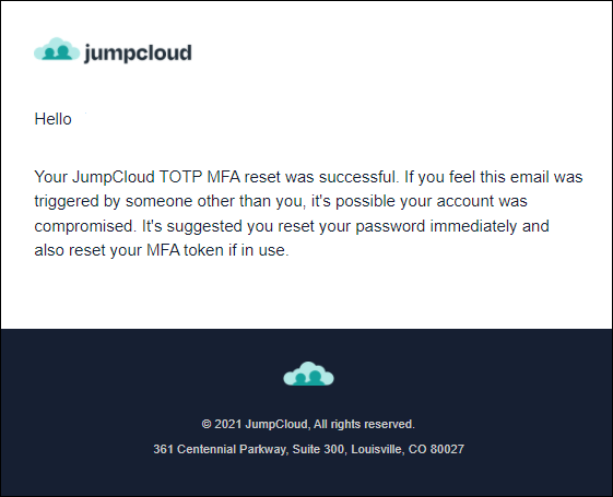 - An email will be sent to you confirming that your TOTP MFA reset was successful.