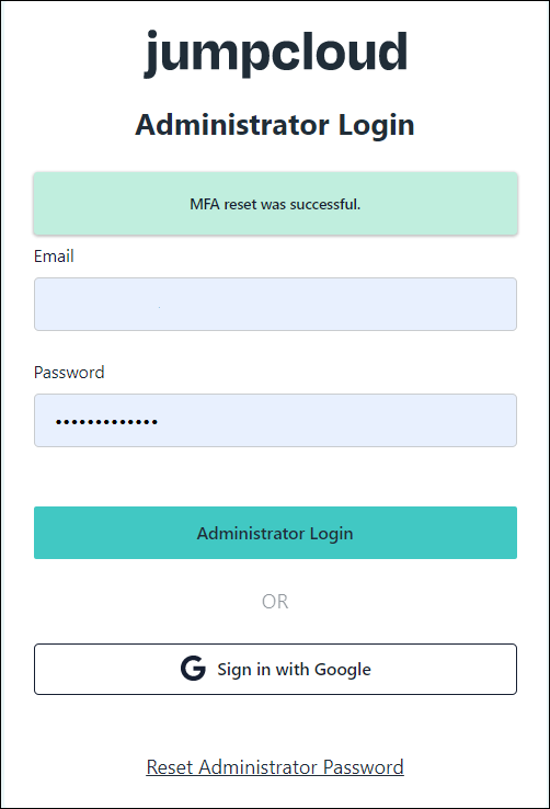 - The JumpCloud MFA requirement is not applicable when administrators use Sign in with Google for login. In such cases, the MFA configured on the Google account will apply.