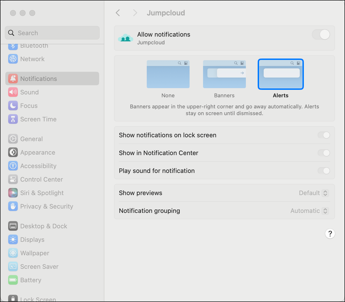 These settings are the equivalent of the settings in System Settings > Notifications > Jumpcloud: