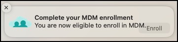 For devices running macOS versions 11.0 and later, the JumpCloud Menu Bar App will trigger end users to enroll in MDM.