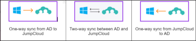 The full integration that enables the syncing of users and groups between JumpCloud and AD, as well as a single login for all AD and JumpCloud managed resources. The integration consists of two agents; the Import Agent and Sync Agent. The integration can be configured to use one or both of the agents. Your use case determines which agents are required, the direction of the sync, and which system is the authority.