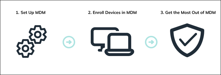 Follow these three steps to set up MDM for your organization, enroll your devices, and use other features (like policies) to remotely manage the devices.