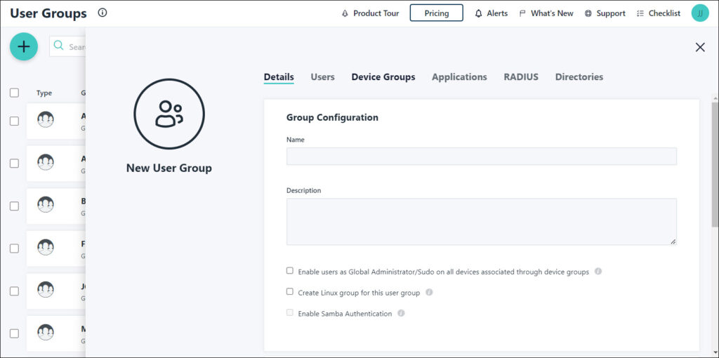 - Device Groups - Pool together your devices for policy enforcement and user account provisioning at scale. Connect the user groups that will get bulk access and assign device policies all at once.