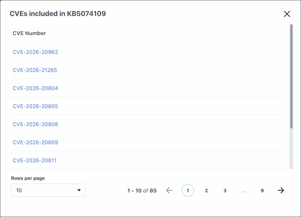 This list displays a list of all KBs aggregated across enrolled Windows devices.