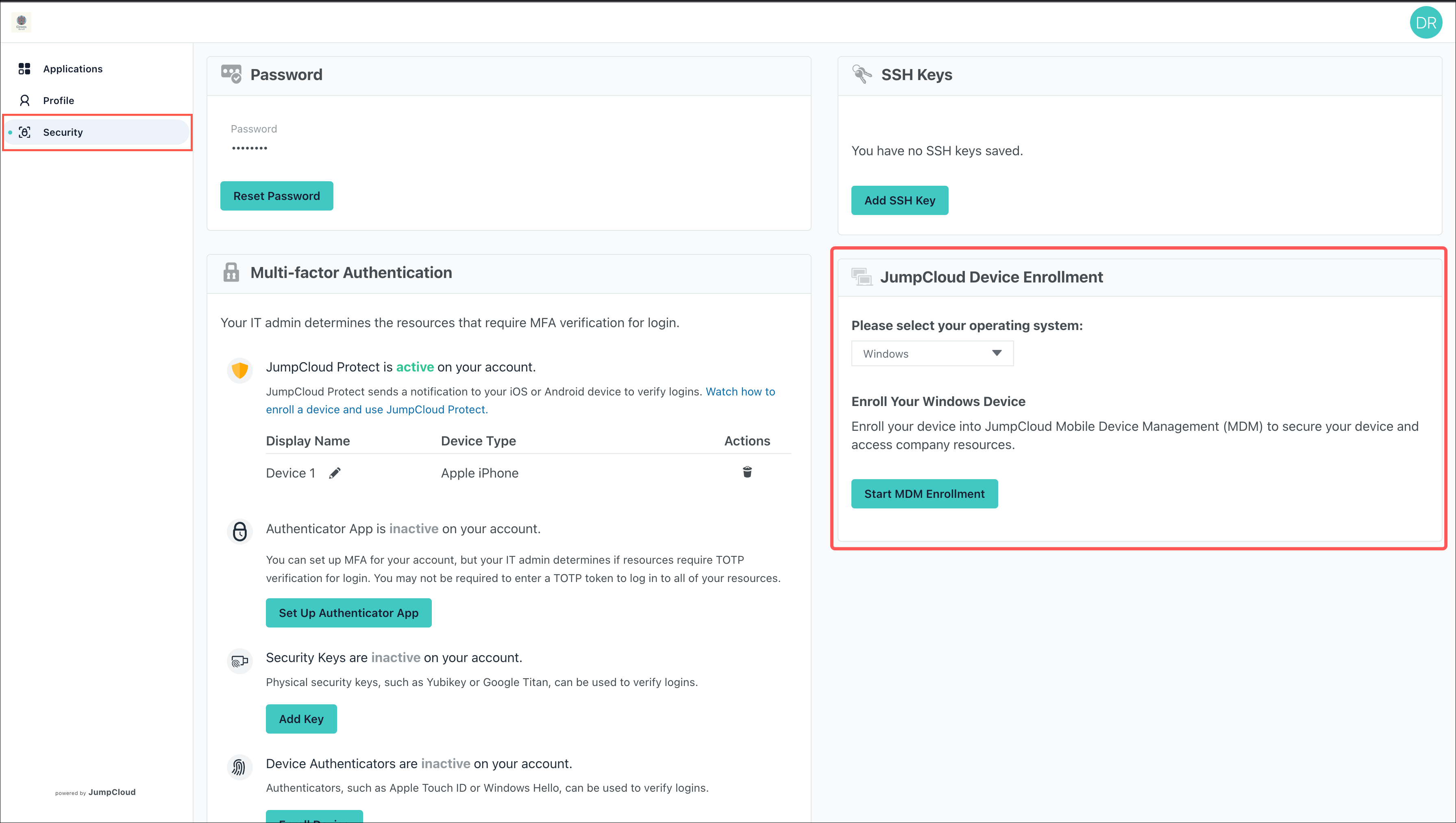 - Log in to the JumpCloud User Portal.