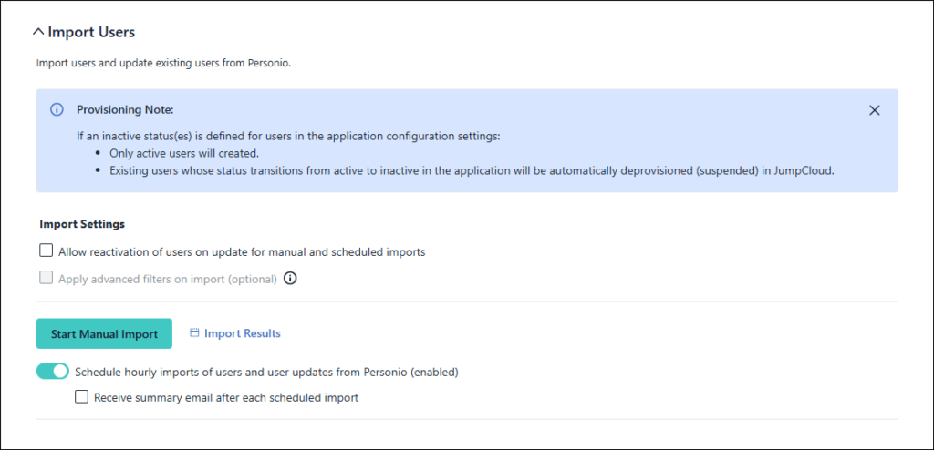 - You will receive a User Import Complete email with a summary of the import results and a link for downloading a copy of the import results.