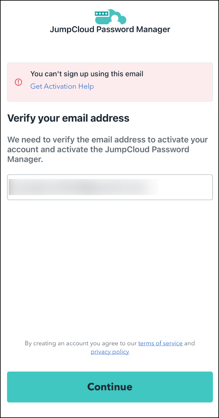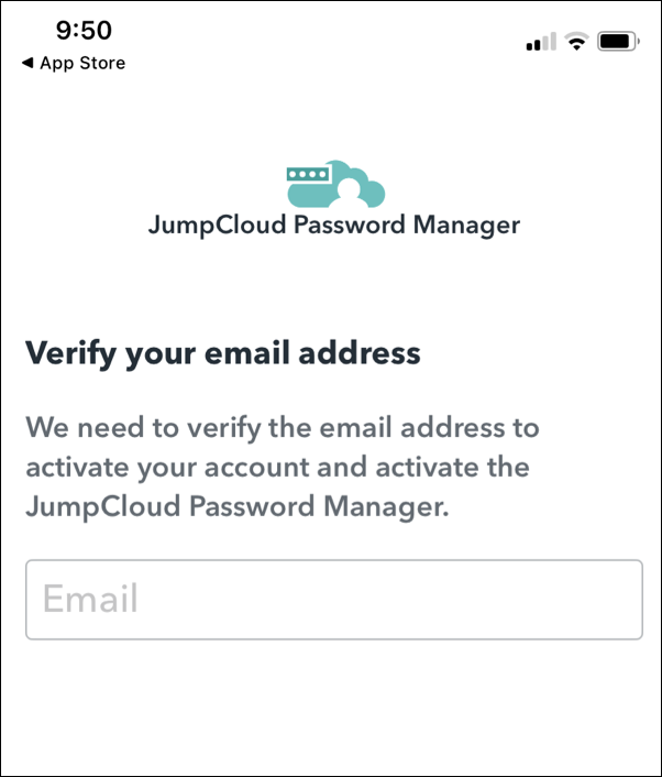 If you are on a mobile device and downloaded the JumpCloud Password Manager application, you will be prompted to log in to the application with your email address.