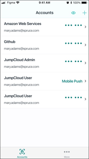 - Bring up the list of accounts in JumpCloud Protect