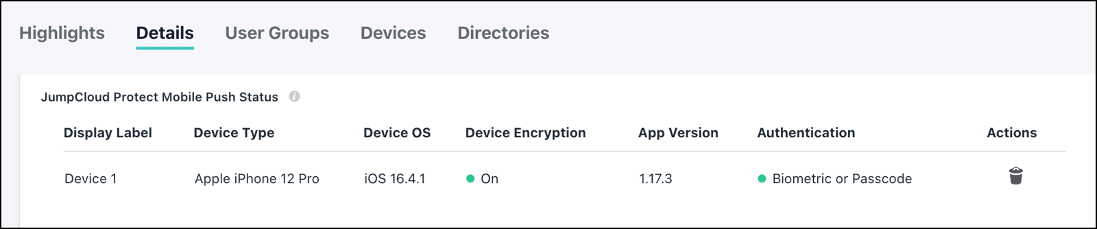 After you have enabled JumpCloud Protect for your users, you can view details of the individual user’s enrollment. To view these details: